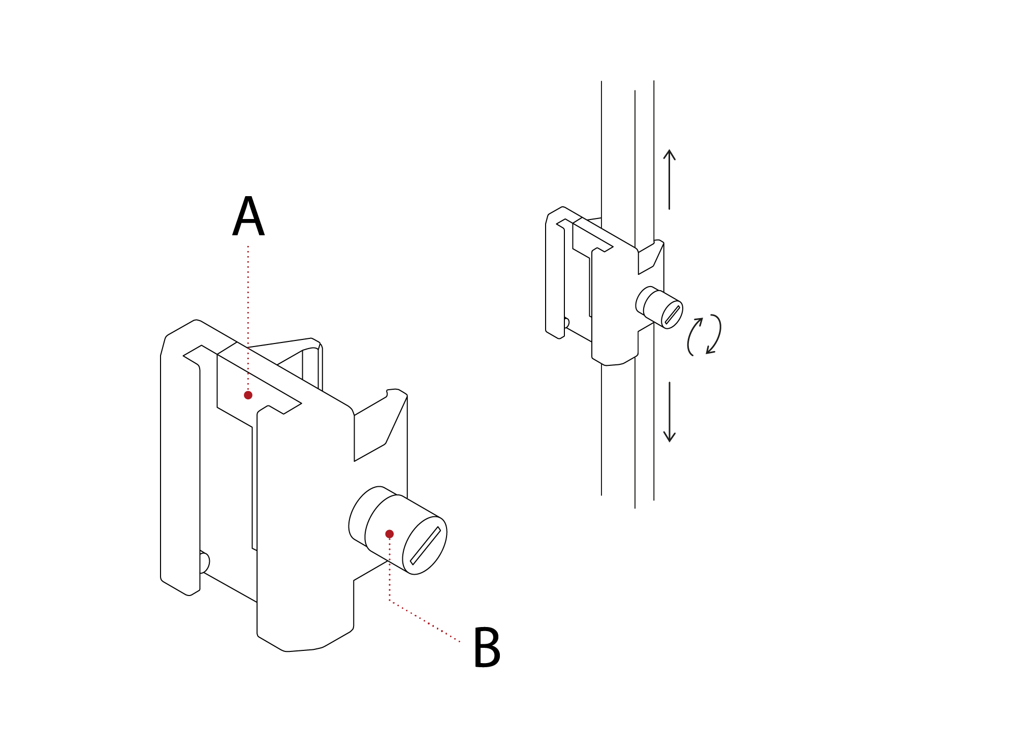 PPE (PVU)-produkter (personlig verneutstyr) festes til holderen med tilbehørsklaver, noe som gjør det enkelt å bytte eller flytte produktene. Klavene kan enkelt skyves langs holderen til ønsket posisjon.