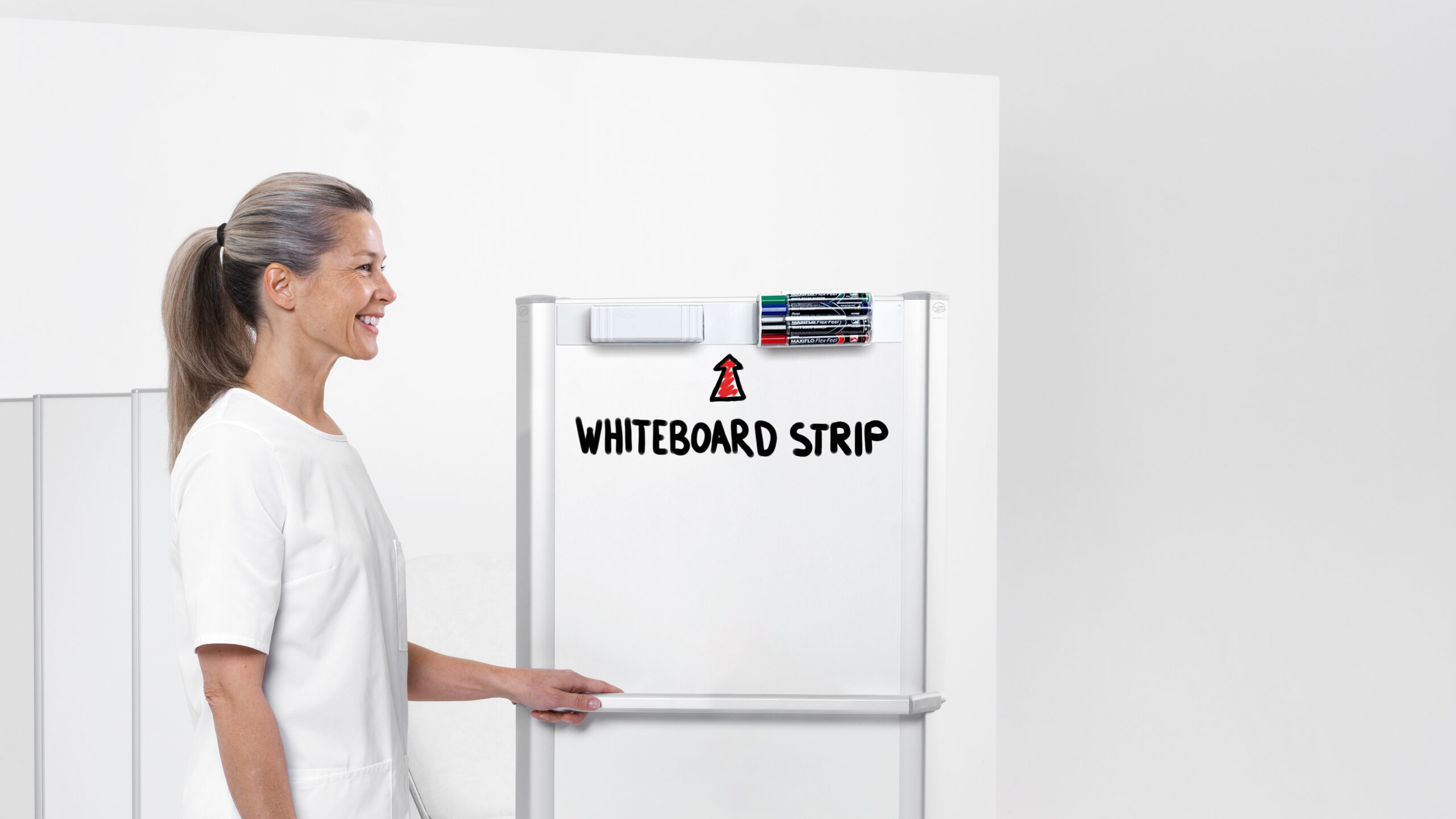 All Silentia products, including the bed end whiteboard screen, meet strict hygiene standards with surfaces that can be easily disinfected. The Silentia screen system supports patient privacy, infection control, and long-term resource efficiency.