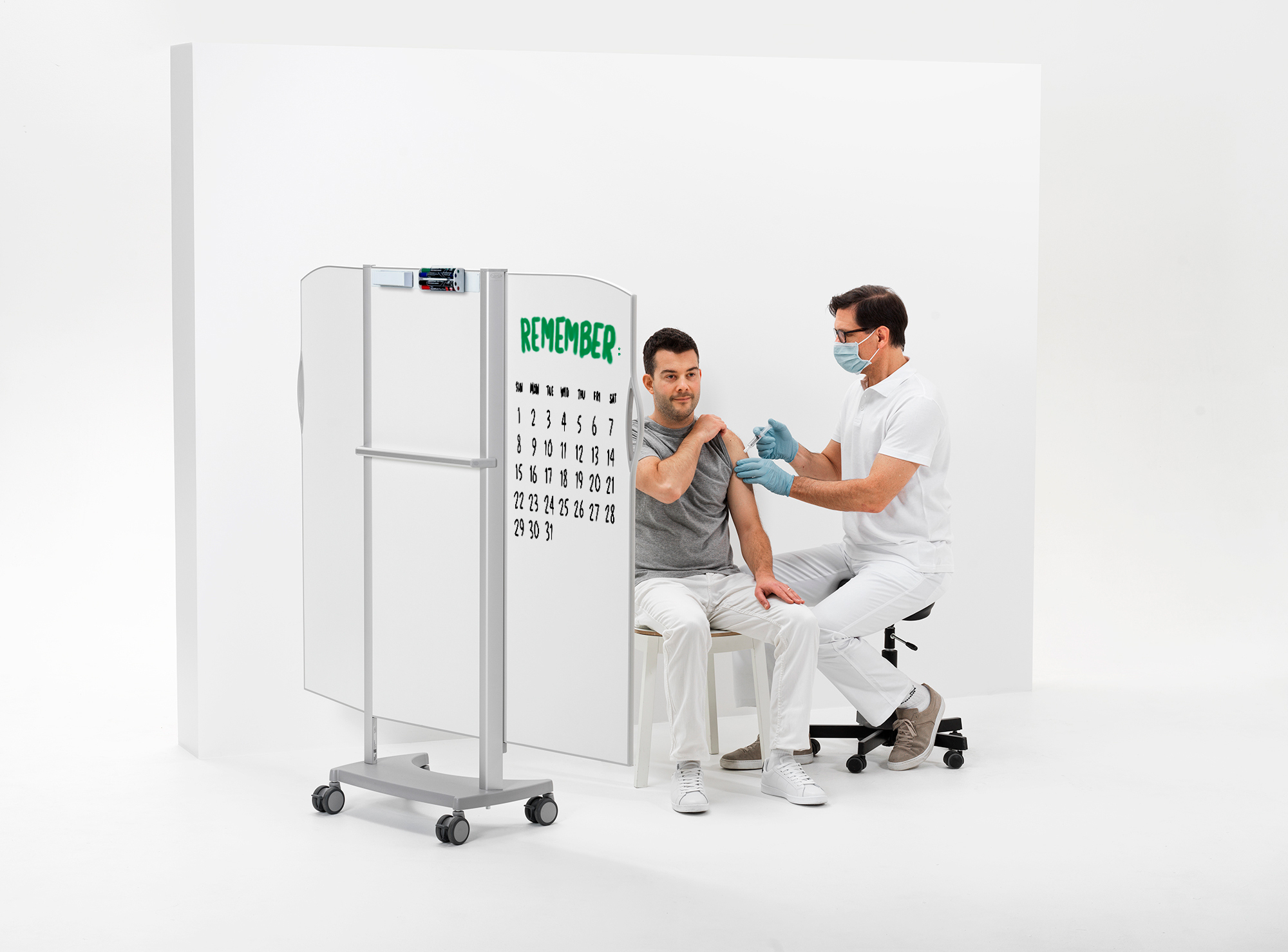 Silentia introduces a new design option that integrates whiteboard panels into the bed end mobile privacy screen.